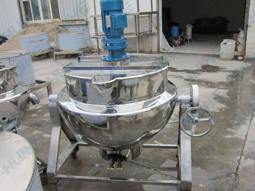 燃?xì)鈯A層鍋結(jié)構(gòu)主要由鍋體和可傾架組成;攪拌有刮邊刮底攪拌和普通攪拌。